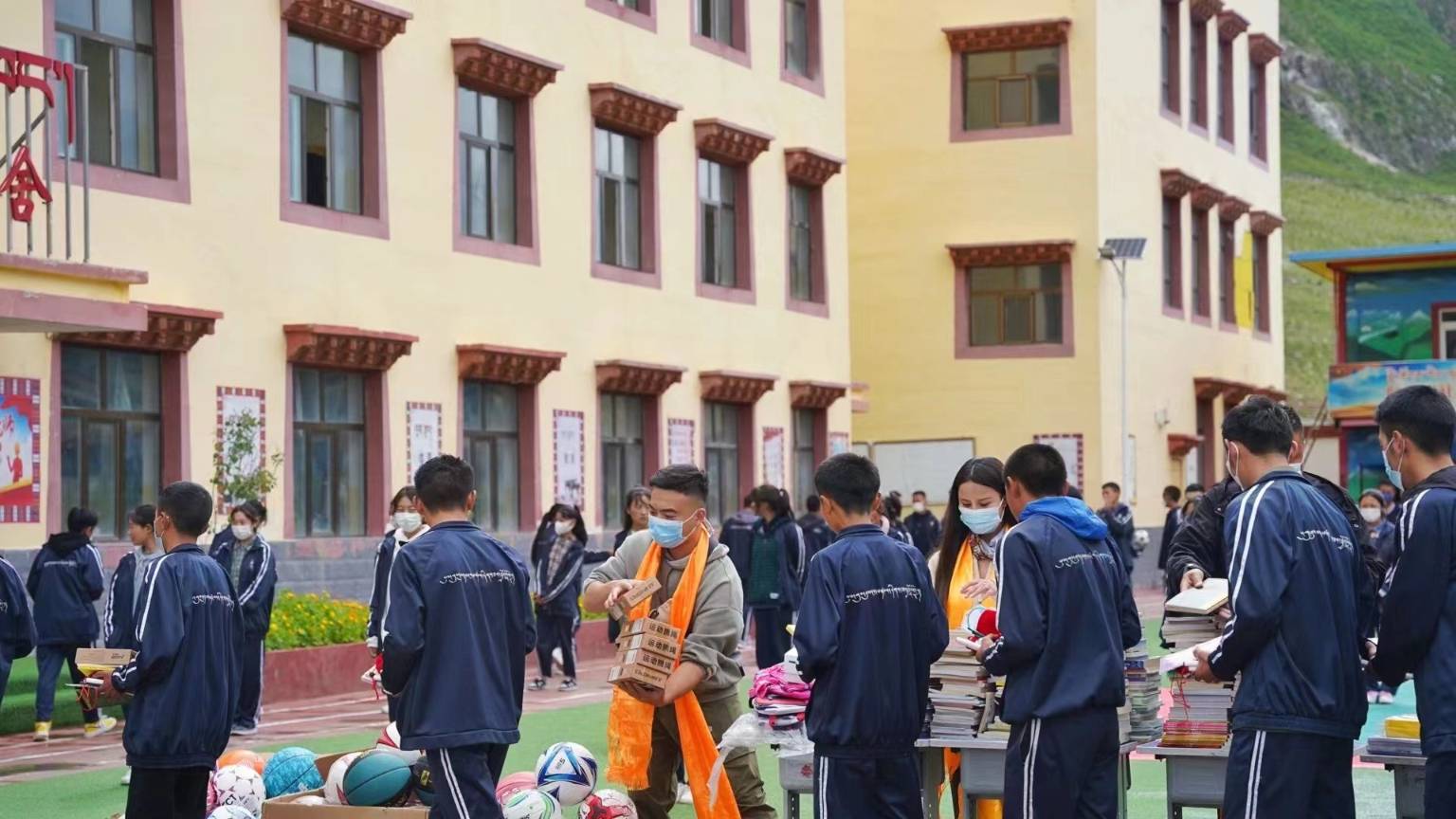 爱心为梦想助力,青春随梦想起航。在校长和老师的带领下,“悍行青藏之巅”穿越活动车队将文具、书本、体育用品等一一发放到同学们手中,并勉励他们不怕困难,勤学苦练,精益求精,努力成为懂技能、有文化、有道德的一代新人,用技能“钥匙”逐梦未来,开启幸福生活。