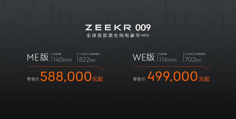 l ZEEKR 009 ME版 140kWh 58.8万元;