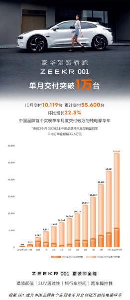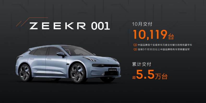 极氪001成为中国品牌首个实现单车月交付破万的纯电豪华车
