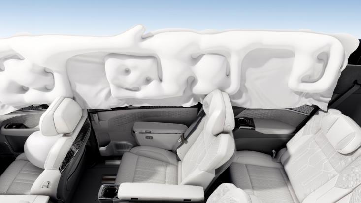 极氪009配备充气量70L的前后排贯穿式超大侧气帘