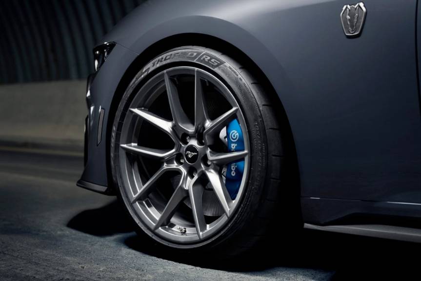 跑得快也要刹得住,制动系统方面,全新Mustang Dark Horse采用了Brembo前6活塞、后4活塞制动卡钳与高性能刹车盘,能够提供可靠的制动性能。此外,新车还标配了主动电磁感应悬挂系统,能够以每秒1000次的频率实时监测车轮和轮胎的动态变化,不仅能优化车辆的动态性能,更能保证日常行驶时的舒适性。