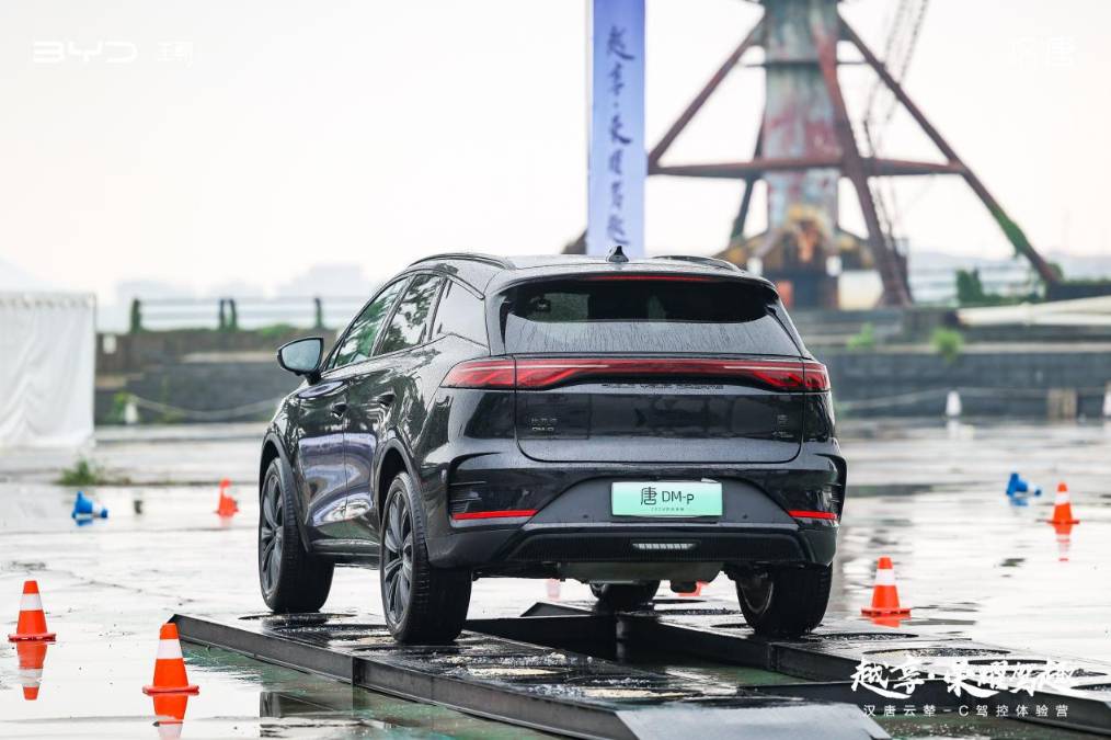 在实际试驾中,汉唐的表现确实惊艳。轱辘哥在百米加速、S形绕桩、8字弯科目主要驾驶比亚迪汉荣耀版,这些项目都很考验车辆的操控稳定性。在加速起步时,汉荣耀版(DM-i)有极强的推背感,电机驱动,反应本身就来得很猛,完成起步后,速度的提升也很快,整体动力输出比得上2.0T的水平,从起步到提速都酣畅淋漓。在快速制动时,汉荣耀版的刹车脚感对驾驶员也非常友好,硬邦邦、软绵绵的感觉都没有,刹车很线性,脚尖和踏板之间的力量传导是很稳定均匀的,作为驾驶员就会有稳操胜券的感觉。