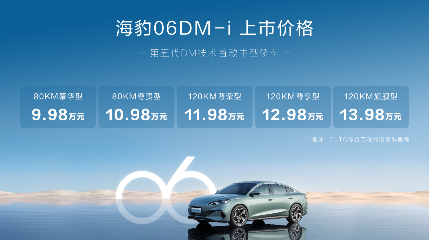 而海豹06DM-i作为比亚迪第五代DM技术赋能的重磅车型,满油满电综合续航里程2100km,百公里亏电油耗仅2.9L,并为用户提供80km和120km(CLTC工况)两种续航选择。海豹06DM-i采用全新海洋美学设计,打造出更符合年轻人审美的最美中型轿车。新车基于比亚迪新一代插混整车平台打造,在设计、空间、驾乘体验等方面具备全面越级的产品实力。凭借新技术、高颜值、新平台等优势,其对传统燃油轿车发起冲击,重塑中型轿车价值标杆,为年轻用户带来更高品质的新能源出行选择。